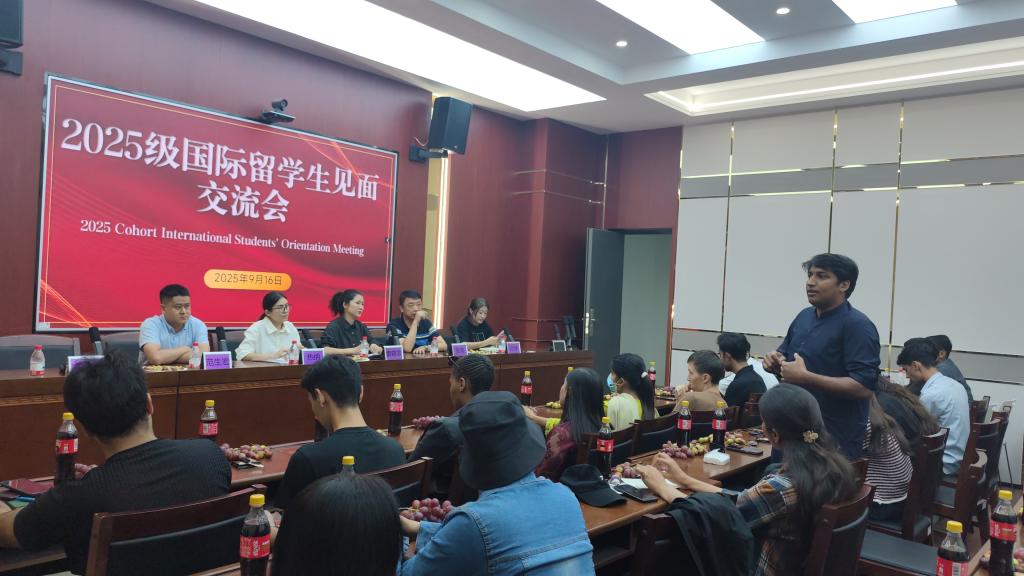 在新生见面会上,对外交流合作处副处长索晓非、党委研究生工作部副部长张昊等领导出席,并与新生们亲切交流,欢迎他们的到来。索晓非介绍了学校的国际化办学特色、学校国际学生管理相关制度等,张昊介绍了留学生培养方案、学业要求等。随后,与会人员围绕汉语HSK考试、如何提升学术能力等方面进行了探讨。