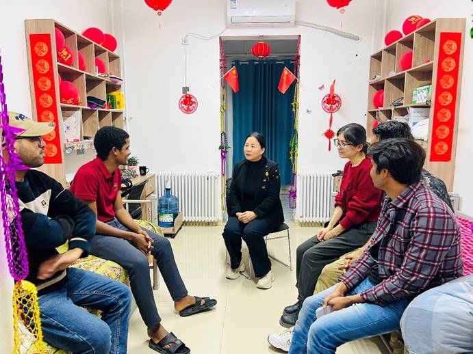 11月25日,对外交流合作处召开专题座谈会,与会人员围绕留学生跨文化适应、学业压力等心理健康问题,研讨排查机制与疏导模式。26-27日,张金凤作了2场专题讲座,第一场讲座结合案例讲解跨文化适应心理调适与情绪管理技巧;第二场讲座聚焦心理健康自我关怀与求助渠道,普及相关知识与校园支持资源。活动全程互动热烈,获留学生广泛好评。来自巴基斯坦的学生SARA表示:“今天学到的减压技巧非常实用,感谢学校对留学生的关怀。”讲座结束后,她走进留学生宿舍进行心理访谈,倾听留学生实际困惑并给予针对性指导。